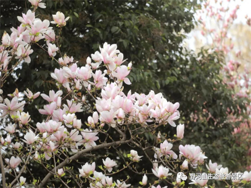 成片桃红、漫山雪白、几抹柔黄,些许淡雅